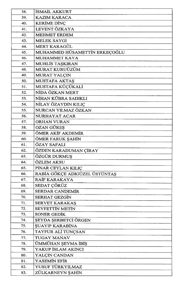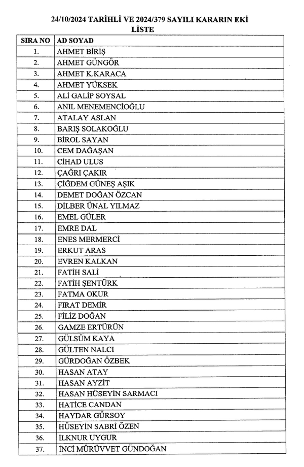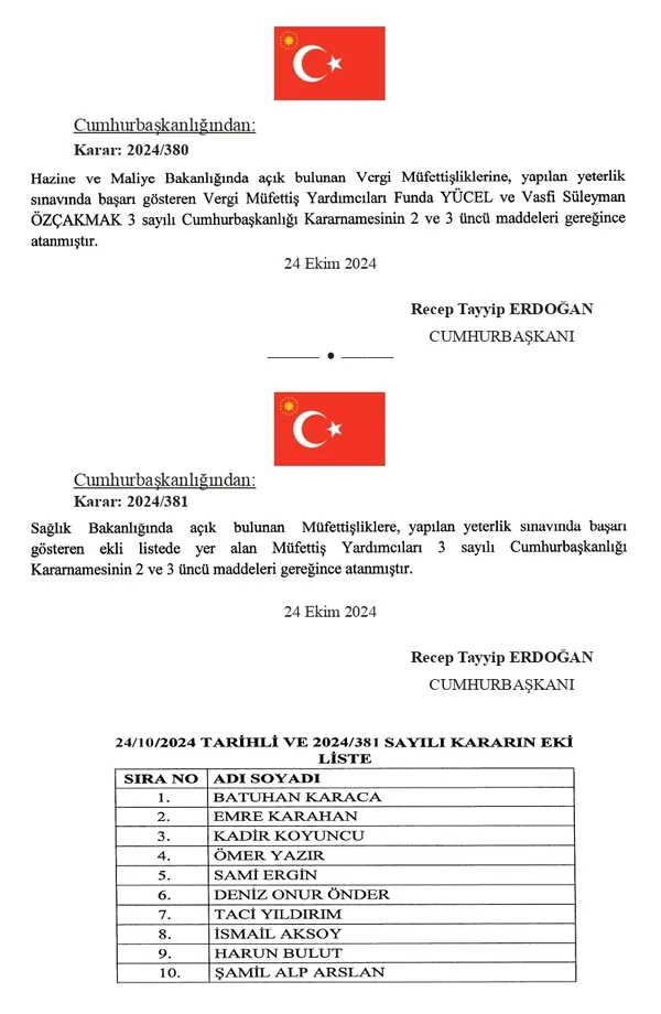 Cumhurbaşkanlığı kararlarına göre atanan kişilerin listesi şöyle: