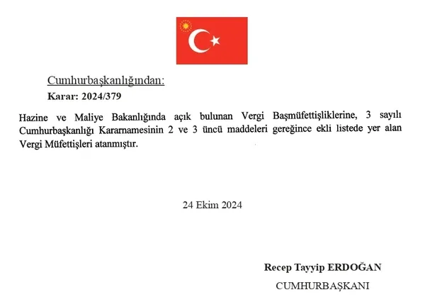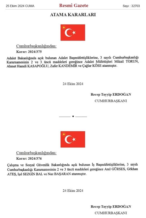 Öte yandan, bazı bakanlıklara başmüfettiş ve müfettiş atamaları yapıldı.